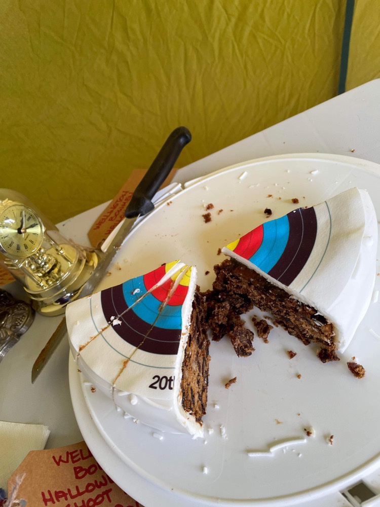We must also thank Martin’s wife for our shortbread medals, and Rachel for the archery themed fruit cake! And thank you to those in charge of the weather, a fine day for flinging sticks.